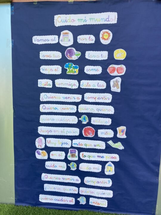 • Educación Infantil: Los más pequeños participaron en la creación de un pictograma a gran escala sobre el tema «Cuido mi mundo», que fue expuesto como mural.