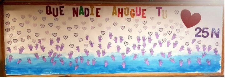 Durante la semana, el alumnado del centro ha creado un mural titulado Que nadie ahogue tu corazón, inspirado en la canción del cantante Manuel Carrasco. Este mural representa un mar del cual emergen las manos de los niños y niñas del colegio, acompañadas de mensajes esperanzadores y positivos, como acariciar, bailar, hacer cosquillas, hablar, mimar, aplaudir, entre otros. Además, los mensajes están escritos en los tres idiomas que se imparten en el centro: castellano, inglés y francés.