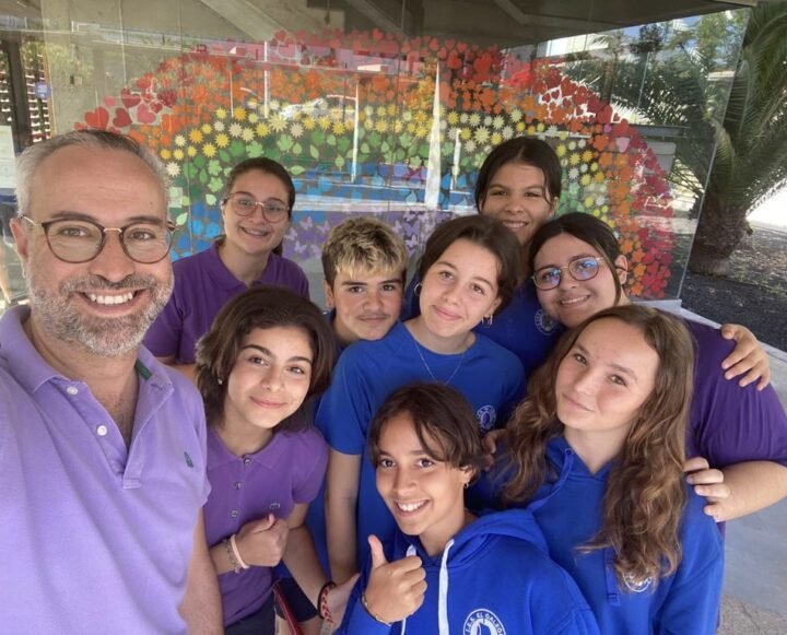 En respuesta a esta realidad, como coordinador del Eje Arte y Acción Cultural de la Red InnovAS y Agente Zonal de Igualdad, he impulsado diversas acciones en el IES El Galeón para garantizar que nuestro alumnado perciba el centro como un espacio seguro, libre de cualquier forma de discriminación, incluidas las LGBTIfobias. Estas actividades incluyen la campaña de sensibilización «Semana de los Colores», lanzada por el equipo de AZIs del CEP Tenerife Sur, la creación de un manifiesto que posteriormente fue musicalizado y grabado, así como el concurso fotográfico “La vida en colores”, en el que participaron tanto estudiantes como docentes. Nuestro punto de partida fue la construcción de un gran arcoíris, en el que el alumnado de distintas tutorías se involucró de manera activa.